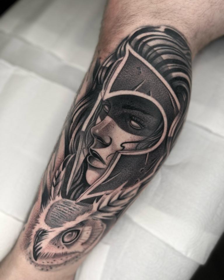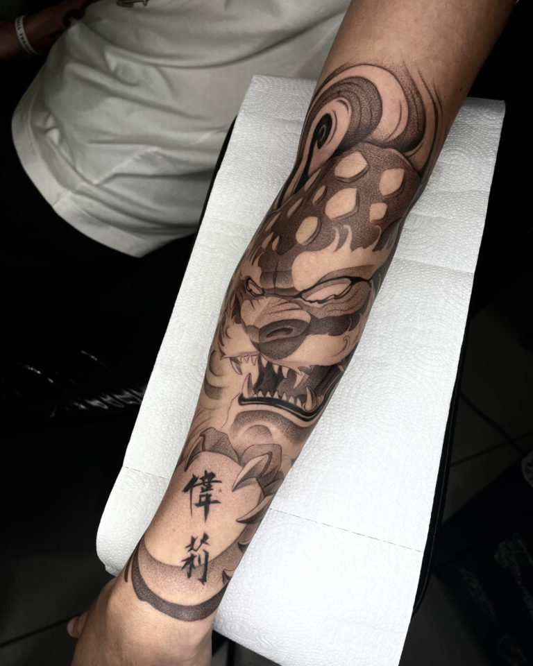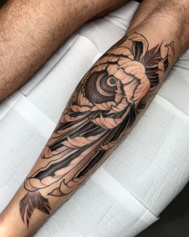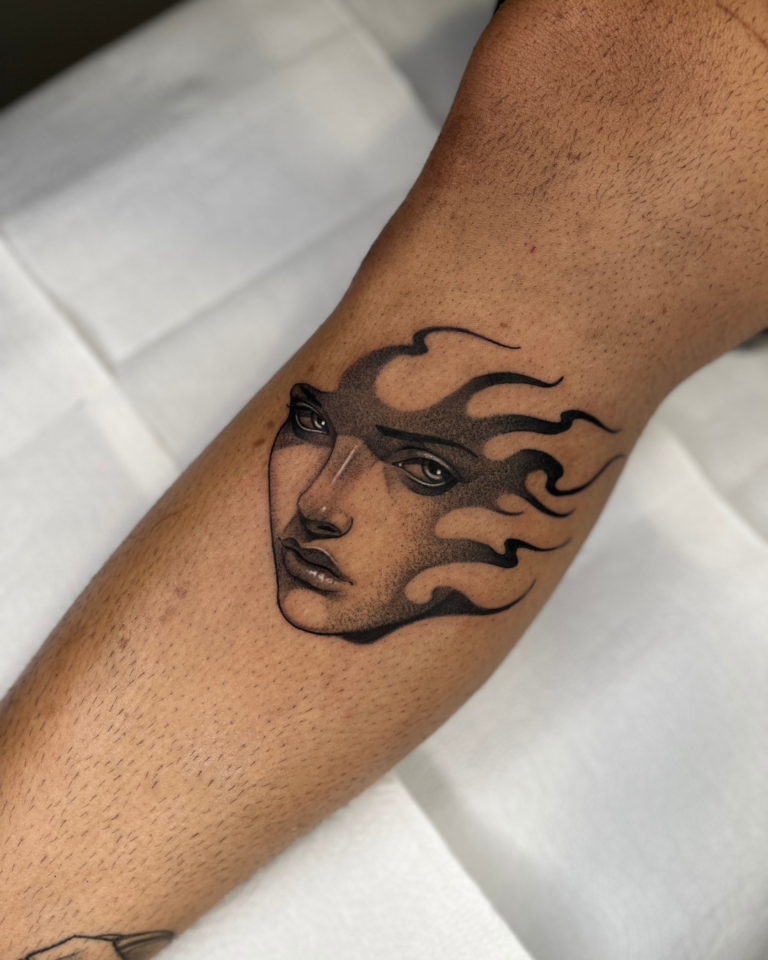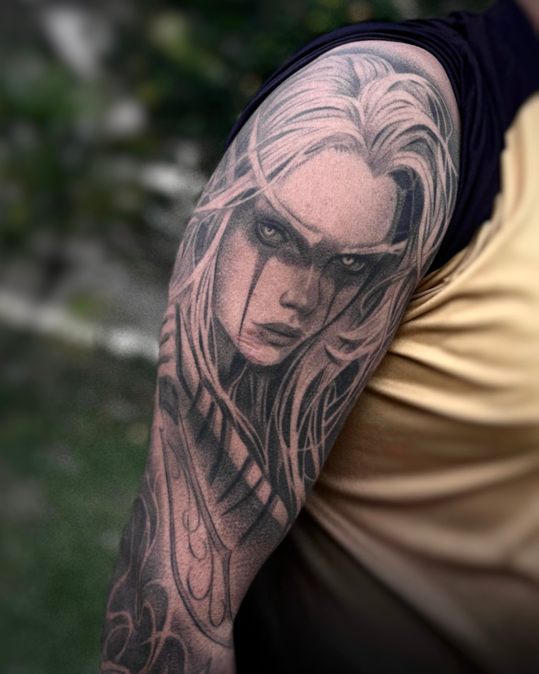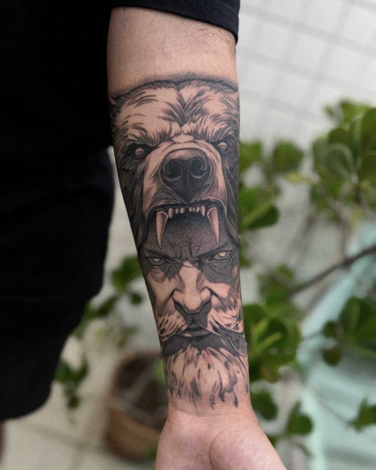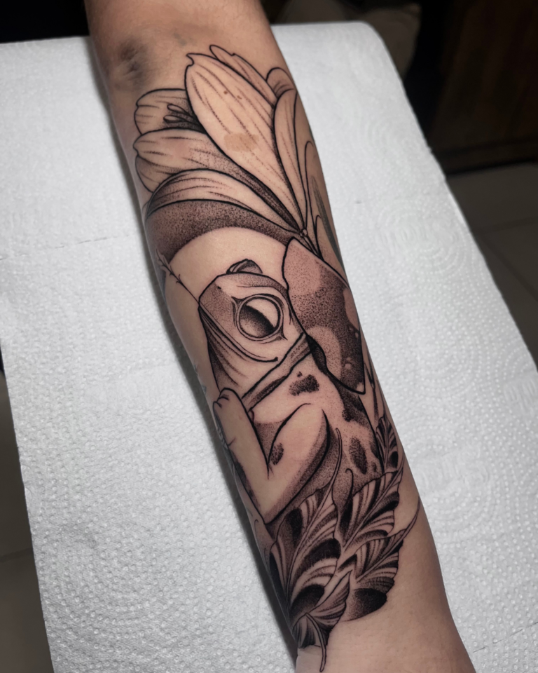 Sempre gostei muito de dois estilos de tatuagem, o realismo e o blackwork. Hoje busco entregar um trabalho que transmite um pouco desses dois mundos.