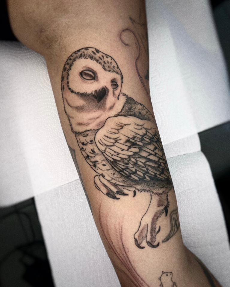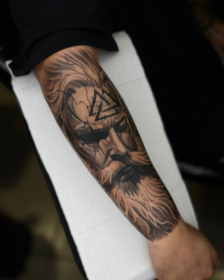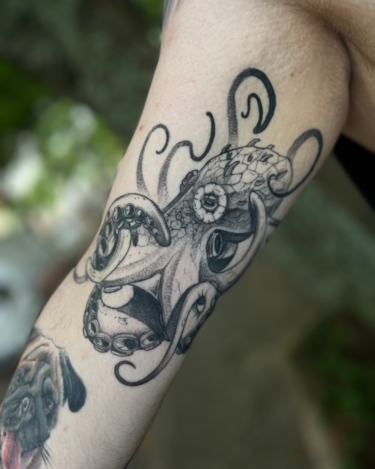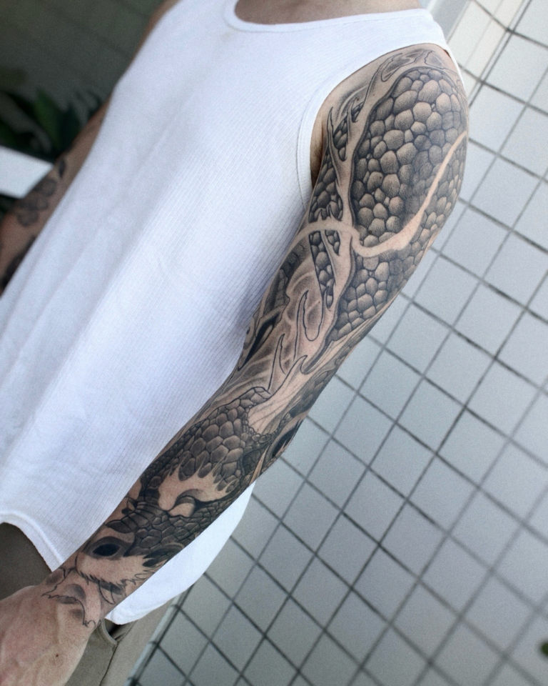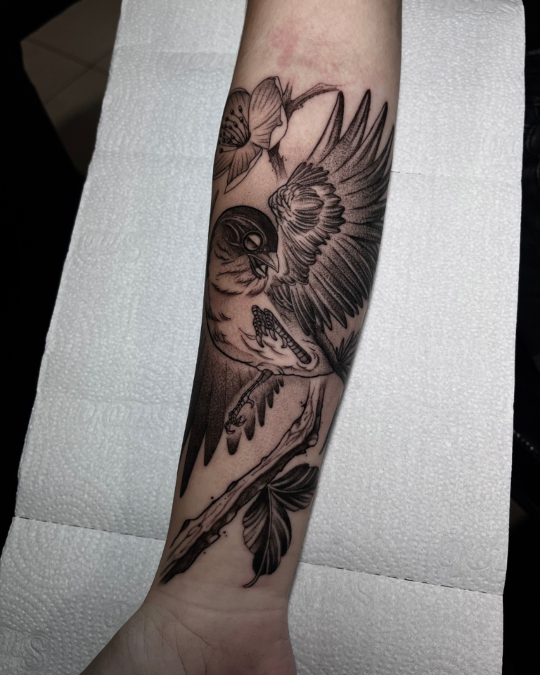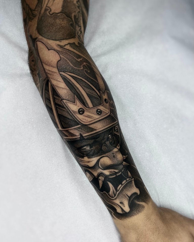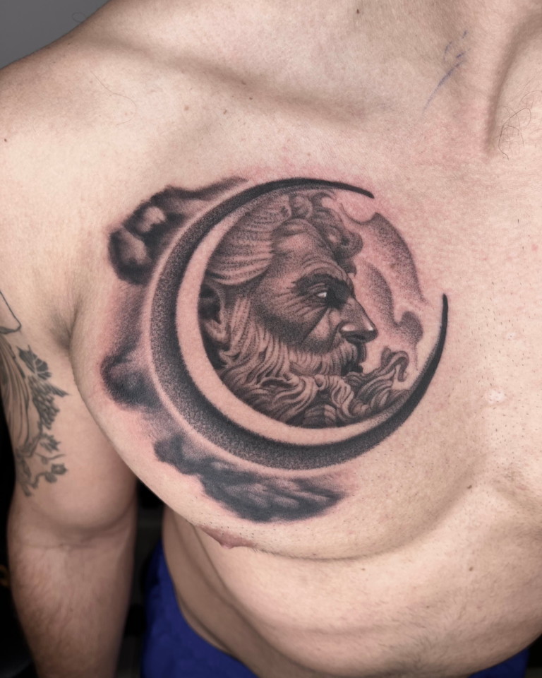 Sempre gostei muito de dois estilos de tatuagem, o realismo e o blackwork. Hoje busco entregar um trabalho que transmite um pouco desses dois mundos.